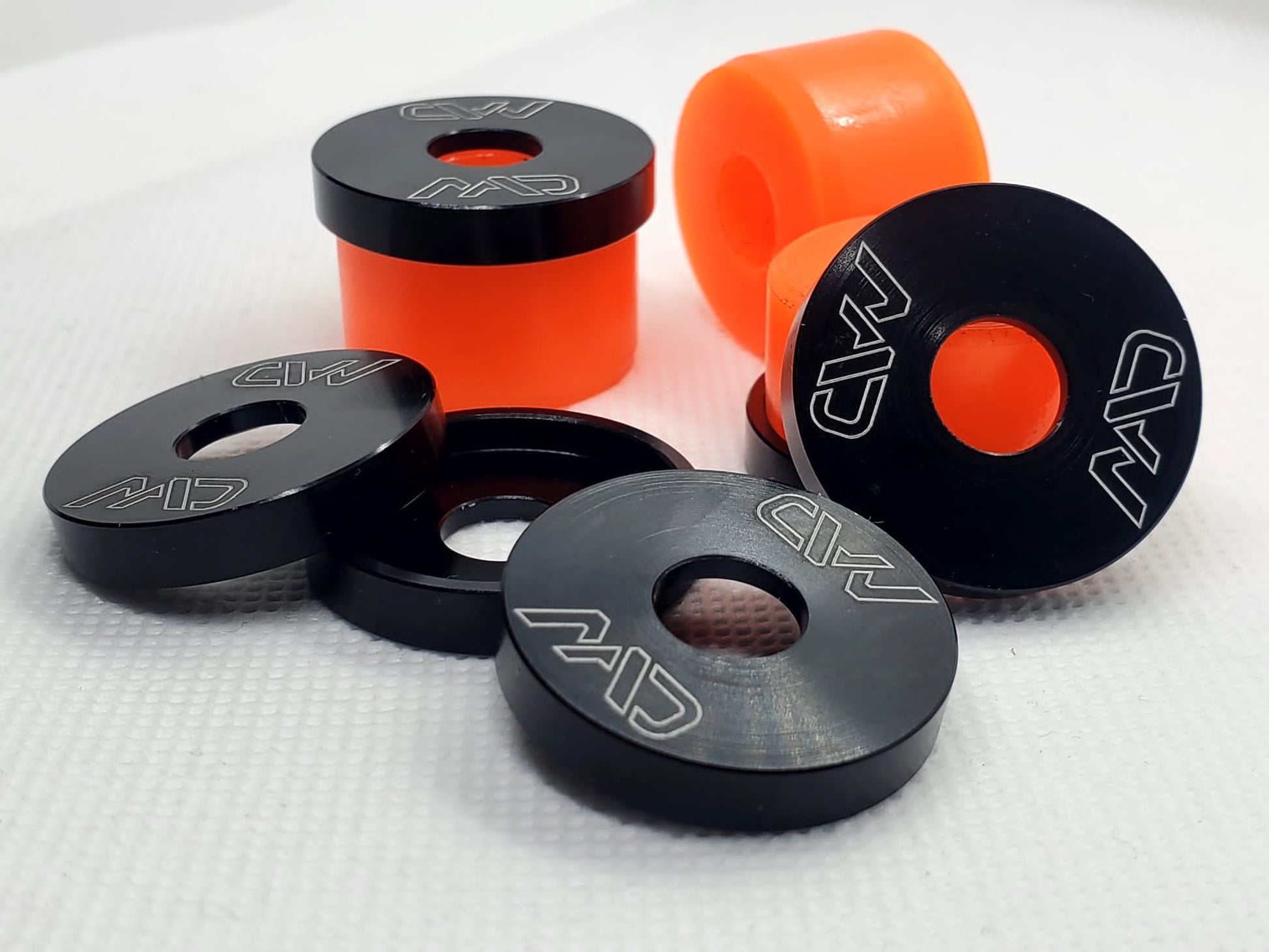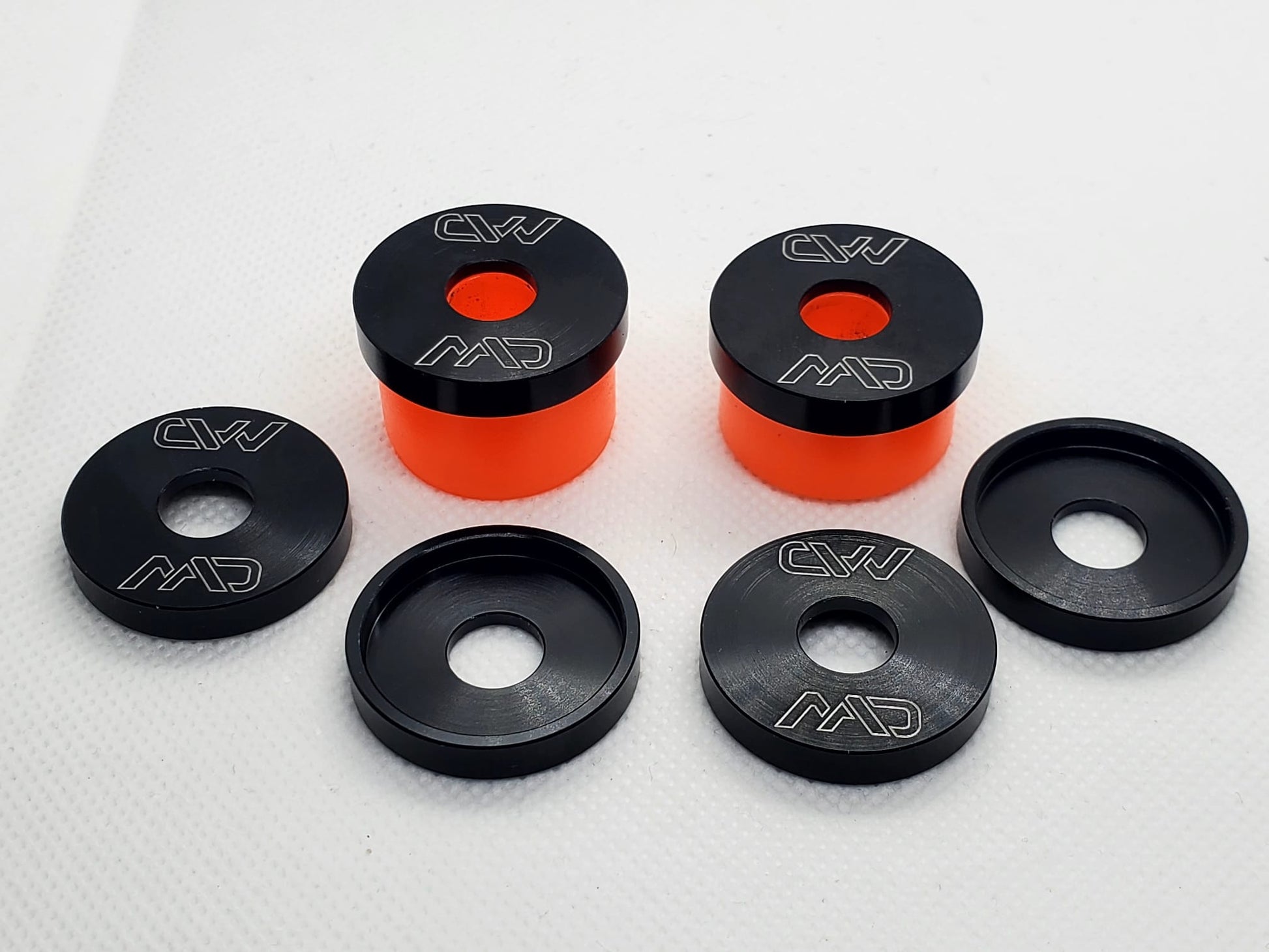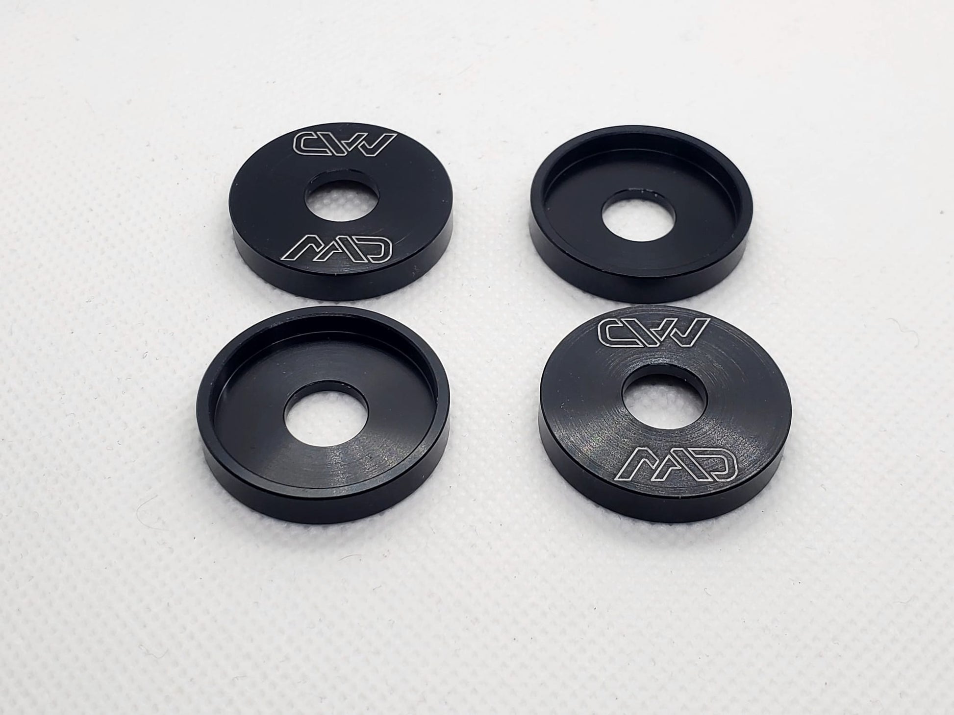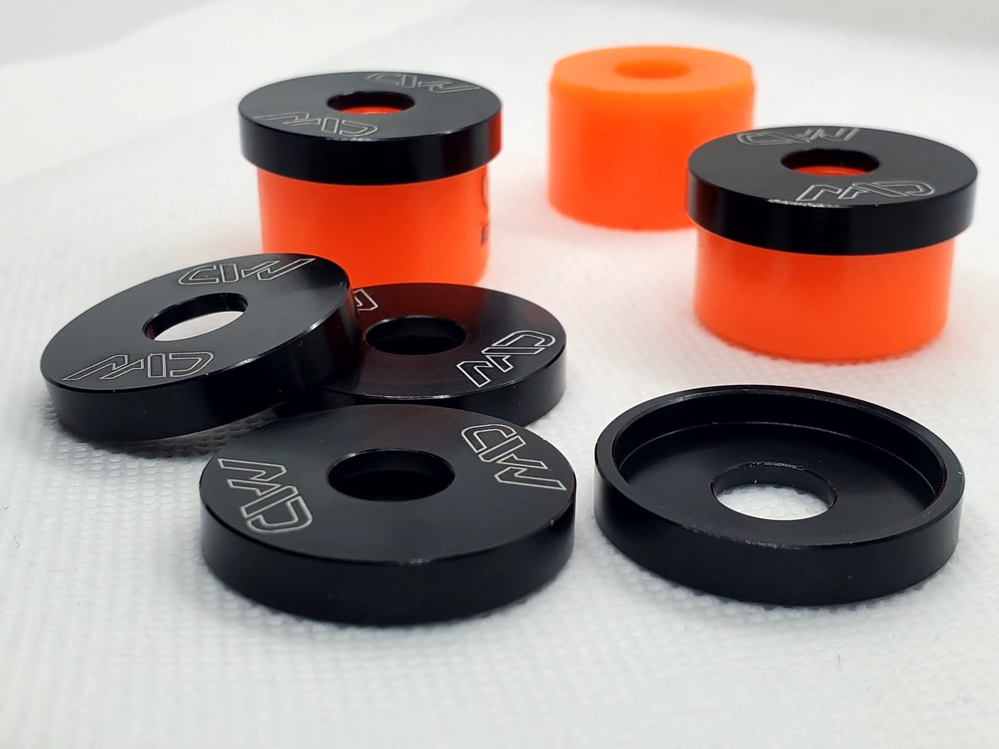 What makes the MAD Precision Cup Washers special is the way they fit on the kingpin and hold the bushing. Very tight tolerances and almost no play make handling more precise, predictable and snappy! Use them in the boardside position for best results.